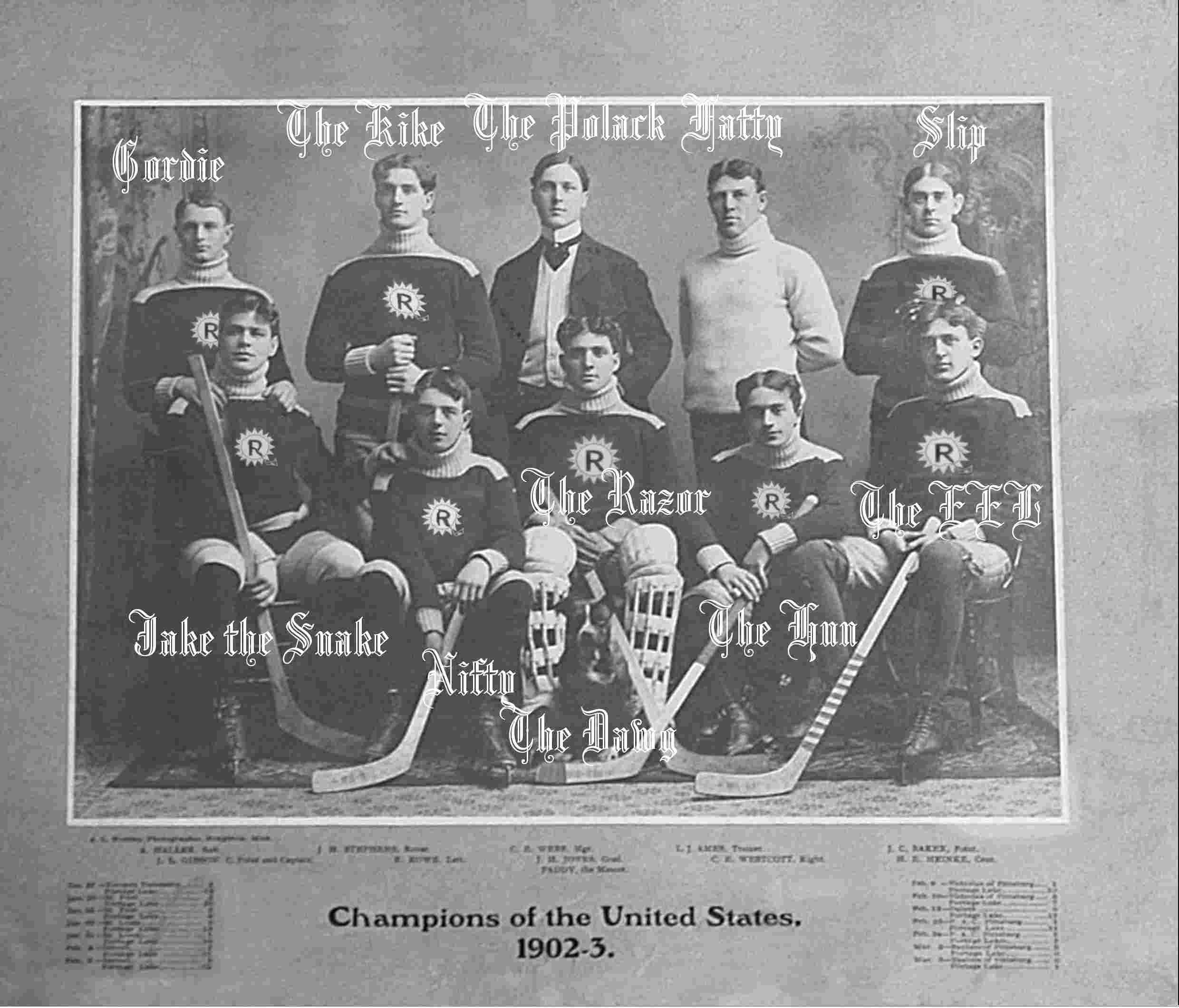 Great-grand-pappy "Snake" told me all the stories of what it was like back in the day. It's hard to imagine that even way back then, the babes use to chase these guys all over town. Some things never change. I love hockey.